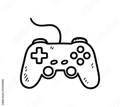 handdrawn cute doodle style video game controller vector line illustration
