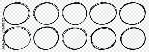 Handdrawn doodle circle highlights. Hand drawn scribble circles. Highlight circles set. Scribble ovals, circle and highlight text. Marker scratch scribble in rounder. Vector illustrator.