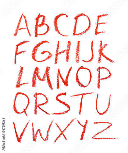 Hand-drawn red lipstick alphabet. Calligraphy font. Modern brushpen lettering. Grunge style alphabet.