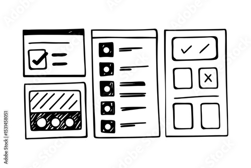 Hand-Drawn UI UX Design Elements. Wireframe, Checklist, To-Do List, Interface, App, Web, and Kanban. Sketch Vector Icon.
