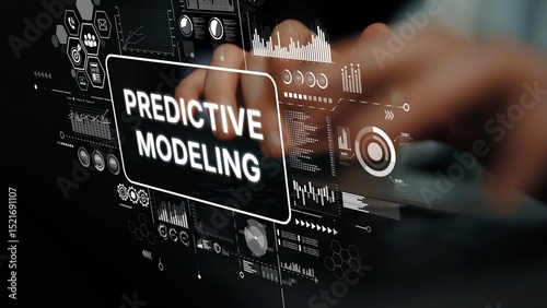 Hands Engaging with Digital Interface Featuring Predictive Modeling and Data Visualization Elements for Analytics Purpose. Asymptotic smart data analytic.