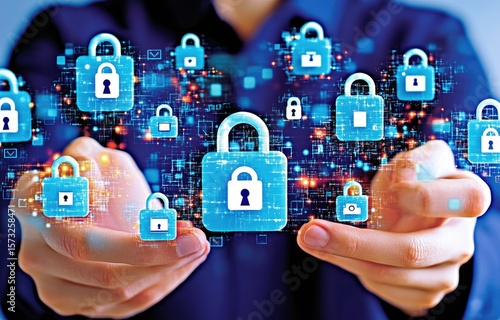 Hands holding digital padlock network
