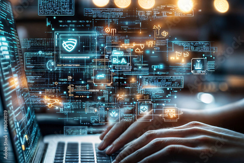 hands programming and developing AI technologies. ai concept