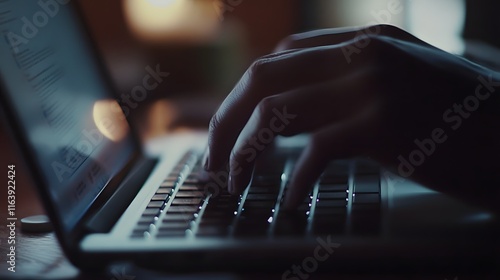 Hands Typing on Laptop Keyboard at Night