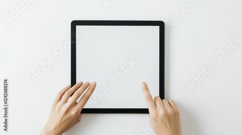 Hands Using Blank Screen Tablet on White Background