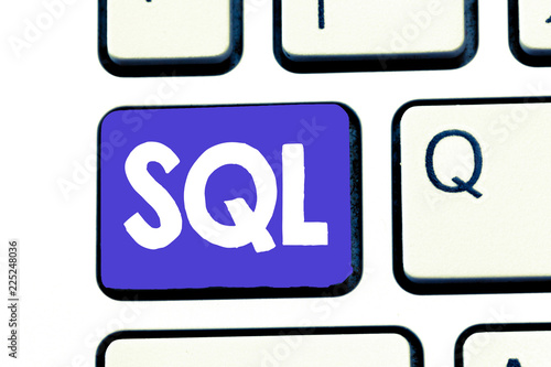 Handwriting text Sql. Concept meaning A standard computer language for relational database management.
