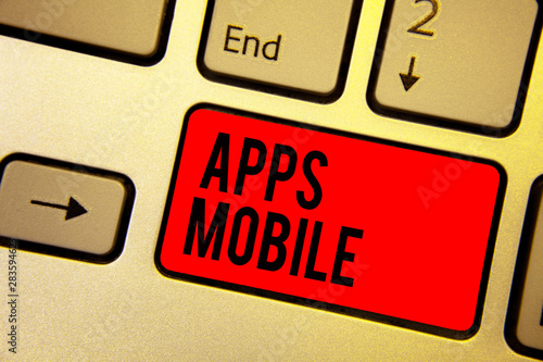 Handwriting text writing Apps Mobile. Concept meaning computer program designed to run on phone hand held device Keyboard red key Intention create computer computing reflection document