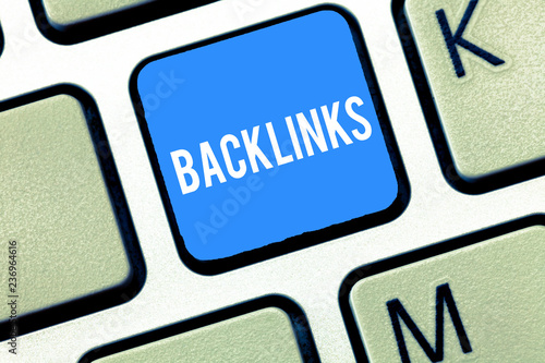 Handwriting text writing Backlinks. Concept meaning incoming hyperlink from one web page to another big website Keyboard key Intention to create computer message, pressing keypad idea