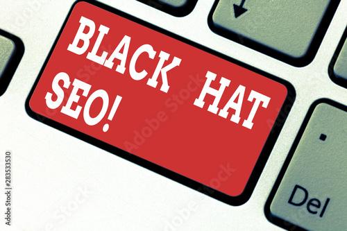 Handwriting text writing Black Hat Seo. Concept meaning Search Engine Optimization using techniques to cheat browsers Keyboard key Intention to create computer message pressing keypad idea