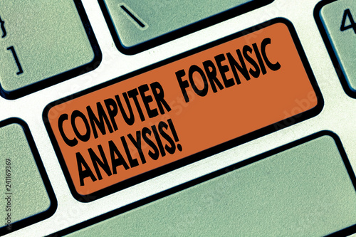 Handwriting text writing Computer Forensic Analysis. Concept meaning evidence found in computers and storage media Keyboard key Intention to create computer message pressing keypad idea