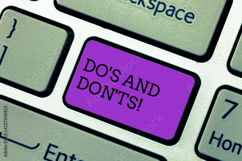 Handwriting text writing Do S And Don Ts. Conceptual photo What can be done and what cannot be knowing right wrong Keyboard key Intention to create computer message pressing keypad idea