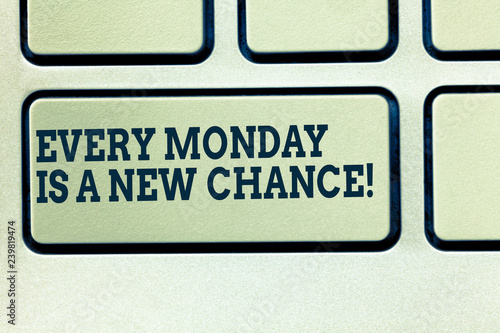 Handwriting text writing Every Monday Is A New Chance. Concept meaning Start your week with positivism Motivation Keyboard key Intention to create computer message pressing keypad idea