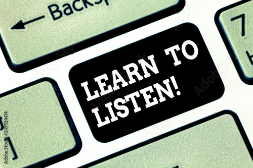 Handwriting text writing Learn To Listen. Concept meaning Able to understand what showing tells you be respectful Keyboard key Intention to create computer message pressing keypad idea