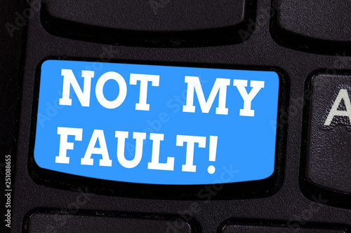 Handwriting text writing Not My Fault. Concept meaning To make excuses to avoid being accused for a mistake error Keyboard key Intention to create computer message pressing keypad idea