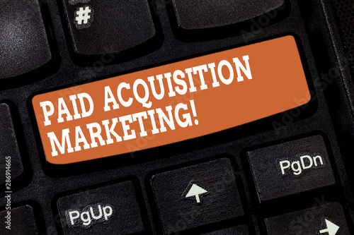 Handwriting text writing Paid Acquisition Marketing. Concept meaning options for acquiring customers to visit site Keyboard key Intention to create computer message pressing keypad idea