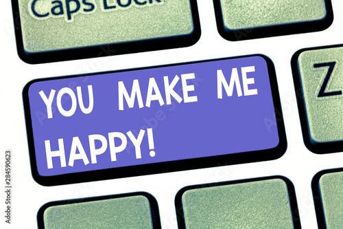 Handwriting text writing You Make Me Happy. Concept meaning Something or Someone that gives pleasure and enjoyment Keyboard key Intention to create computer message pressing keypad idea