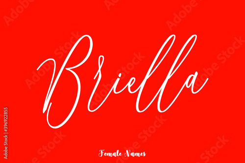 Handwritten Cursive Text Female Name "Briella"On Red Background