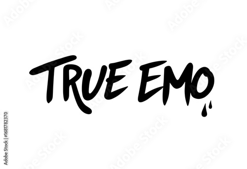 Handwritten text saying "True Emo" with a teardrop accent