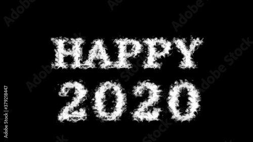 Happy 2020 cloud text effect black isolated background. animated text effect with high visual impact. letter and text effect.