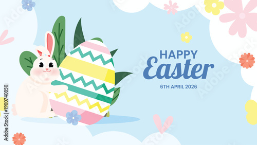 Happy Easter Greeting Design with Bunny Holding Egg Basket