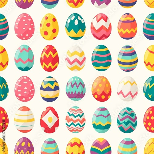 Happy easter watercolor seamless pattern. Multi-colored Easter eggs. Generated ai