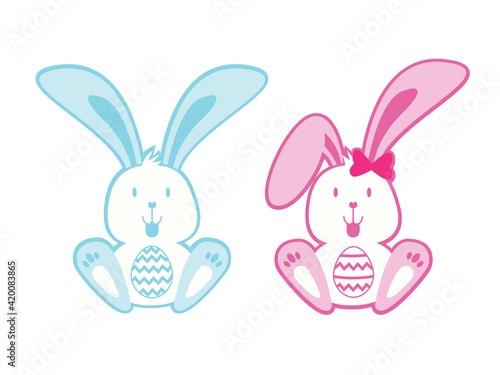 Happy Easter White Rabbit Bunny bunny, easter design. Vector illustration.