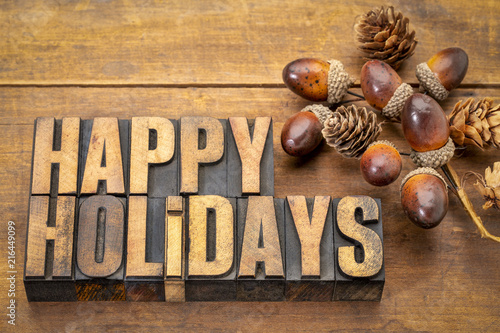 Happy Holidays in wood type