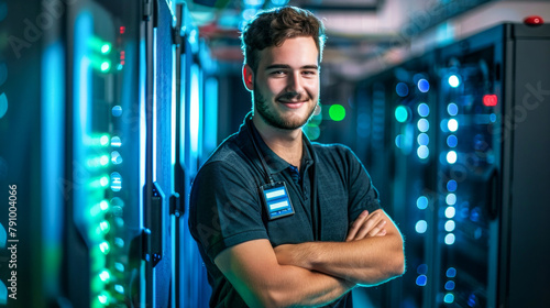 Happy IT Professional at Data Center. Generative ai