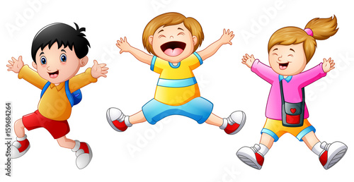 Happy school kids cartoon jumping