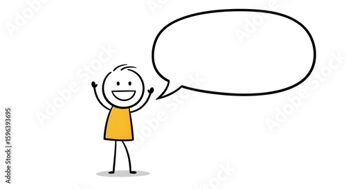 Happy Stick Figure with Speech Bubble - Communication Concept