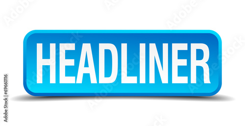 Headliner blue 3d realistic square isolated button