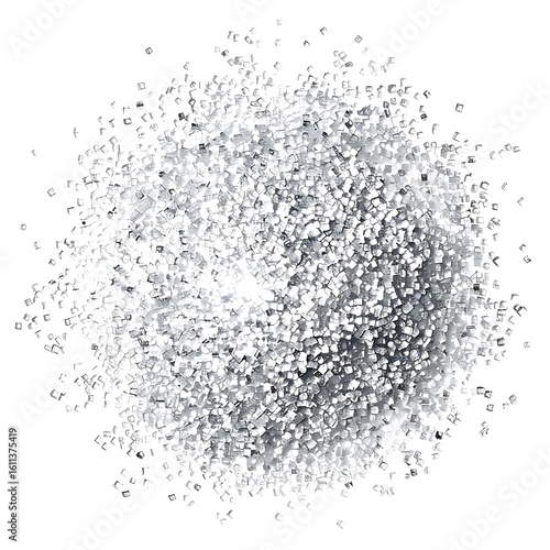 Heap of Small, Shiny, Cube-Shaped Particles on a White Background