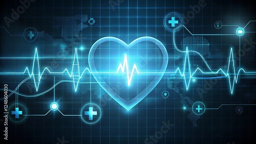Heart monitor line glowing on dark background with pulse