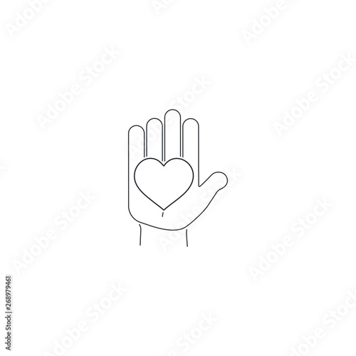 Heart on the hand. Vector linear icon.