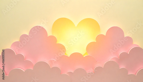 heart-shaped cloud, yellow sun, pink, 8k image