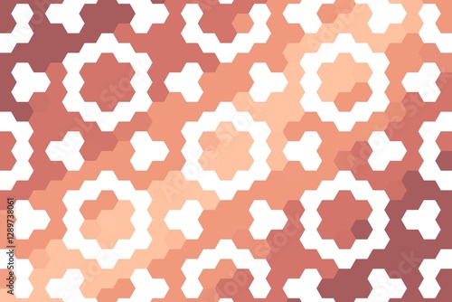 Hexagonal circle pattern in soft brown and pink with abstract hexagon rings and a gradient effect. Modern background concept