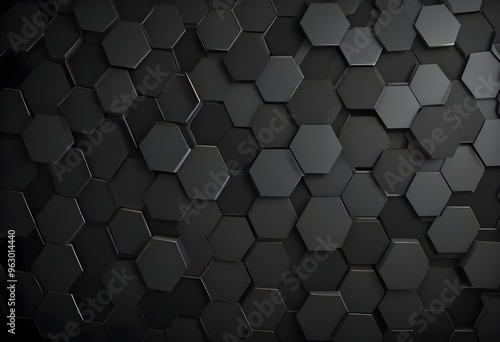 Hexagonal dark grey, black background texture, 3d illustration, 3d rendering, grey hexagons modern background