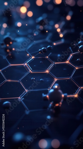 Hexagonal Molecular Structure with Illuminated Nodes and Connections