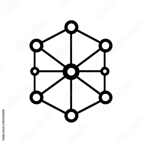 Hexagonal network icon with six outer nodes and one central node connected by straight lines