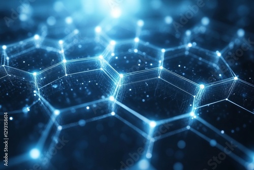 Hexagonal pattern made of interconnected lines and luminous nodes in a digital environment