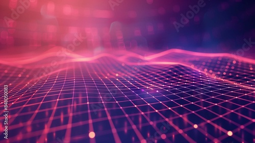 Hi Tech Network Connection Grid. 3D Technology Style Banner Design. Technology Vector Illustration. Futuristic Design for Technology or Science Event. Perspective Grid with Depth of Field Effect