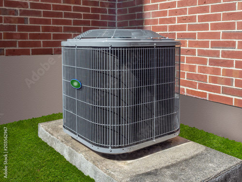 High efficiency modern AC-heater units, energy save solution-horizontal, outside an apartment complex