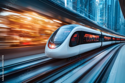 High Speed Train Futuristic Track. Background Fast Motion Blur.