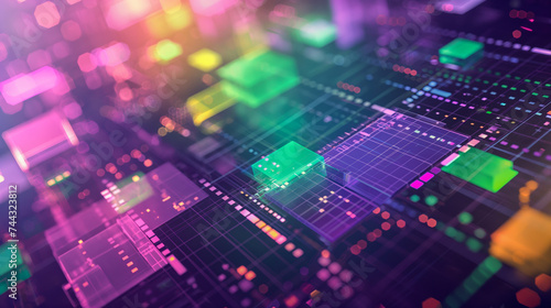 High tech abstract holographic background - Blockchain Distributed Ledger Technology DTL Consensus Algorithm and cryptographic hash function concept illustration
