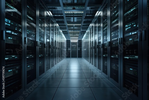 High tech data center with rows of servers, generative ai
