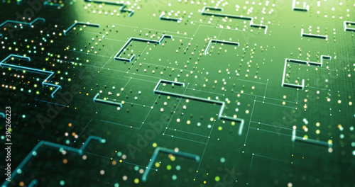 High Tech Futuristic AI Processor. Processing Data In Real Time. Artificial Intelligence. Computer And Technology Related 3D Illustration Render