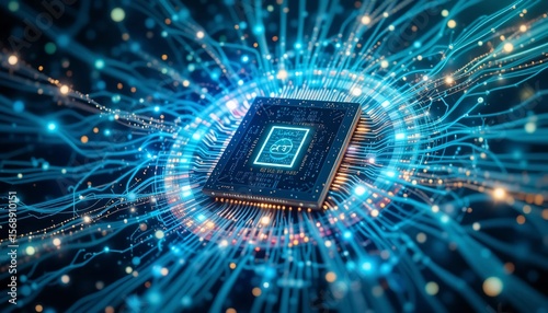 High Tech Microchip Processor Central Processing Unit CPU Digital Technology Circuit Board Data