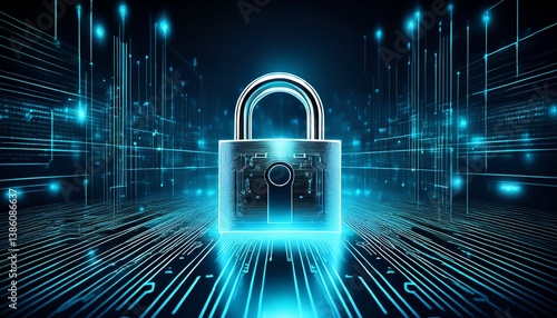 high tech padlock on digital background design
