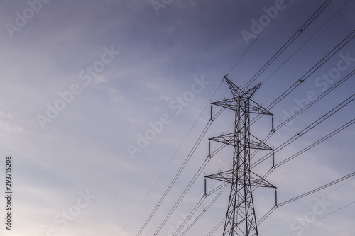 High voltage post tower with blue sky