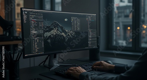 High-end desktop computer in tech workspace, sharp focus, clean background, professional lighting, editorial composition
